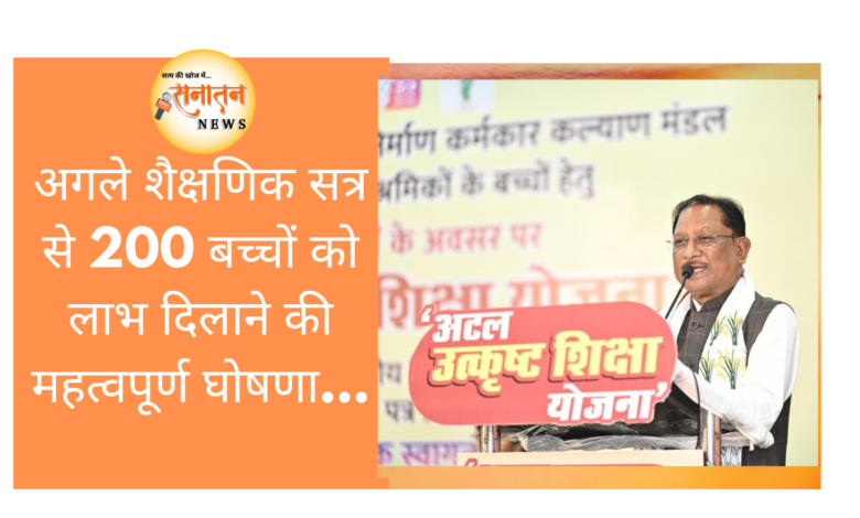 इस अवसर पर मुख्यमंत्री साय ने कहा कि अटल उत्कृष्ट शिक्षा योजना से निर्माण श्रमिकों के बच्चों के लिए बेहतर शिक्षा का मार्ग प्रशस्त हुआ है। श्री साय ने घोषणा की कि अगले शैक्षणिक सत्र से इस योजना का लाभ 200 बच्चों को मिलेगा। मुख्यमंत्री श्री साय ने कहा कि श्रमिक अनेक समाज के हित के लिए कार्य करता है, परंतु अपने परिवार के लिए बहुत कम समय, संसाधन, ऊर्जा और ध्यान दे पाता है। उनके भी सपने होते हैं कि उनके घर के बच्चे पढ़-लिखकर बेहतर जीवन जिएँ, ताकि भविष्य में मजदूर का बेटा-बेटी केवल मजदूरी न करे, बल्कि समाज के साथ कदम से कदम मिलाकर आईएएस, आईपीएस, डॉक्टर, इंजीनियर, चार्टर्ड अकाउंटेंट, वकील और राजनेता बने।इन्हीं बातों को ध्यान में रखते हुए प्रधानमंत्री नरेन्द्र मोदी की गारंटी के अंतर्गत श्रमिक बच्चों को बेहतर शिक्षा उपलब्ध कराने के उद्देश्य से हमारी सरकार ने छत्तीसगढ़ में “अटल उत्कृष्ट शिक्षा योजना” प्रारंभ की है। इसके तहत प्रदेश के श्रमिकों के बच्चों को कक्षा छठवीं से बारहवीं तक श्रेष्ठ आवासीय विद्यालयों में निःशुल्क शिक्षा प्राप्त होगी। इनका पूरा खर्च श्रम विभाग द्वारा वहन किया जाएगा।