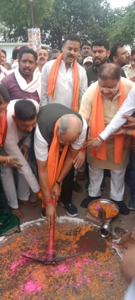 आपको बता दूं की लोकसभा सांसद बृजमोहन अग्रवाल और रायपुर दक्षिण विधायक सुनील सोनी के जनहितेषी सतत प्रयासों से राज्य लोक निर्माण विभाग द्वारा मुख्यमंत्री विष्णुदेव साय के नेतृत्व और उपमुख्यमंत्री लोक निर्माण विभाग और नगरीय प्रशासन एवं विकास विभाग अरुण साव के मार्गदर्शन में रायपुर दक्षिण विधानसभा क्षेत्र अंतर्गत रायपुर नगर पालिक निगम जोन क्रमांक 6 अंतर्गत वार्ड क्रमांक 60 क्षेत्र के अंतर्गत लगभग 5 किलोमीटर क्षेत्र में रावतपुरा कॉलोनी फेस – 1 और फेस -2 आवासीय क्षेत्र में 2 करोड़ 76 लाख 35 हजार रूपये की स्वीकृत लागत से नई सीसी रोड का निर्माण और विकास जनहित में जन सुविधा विस्तार हेतु शीघ्र करने वहाँ पहुंचकर रायपुर लोकसभा सांसद बृजमोहन अग्रवाल ने रायपुर दक्षिण विधायक सुनील सोनी, रायपुर नगर पालिक निगम की महापौर मीनल चौबे, सभापति सूर्यकान्त राठौड़, जोन 6 जोन अध्यक्ष बद्री प्रसाद गुप्ता, रायपुर शहर जिला भाजपा अध्यक्ष रमेश सिंह ठाकुर, वार्ड 60 पार्षद सपहा, वार्ड 61 पार्षद रवि सोनकर, भाठागांव मण्डल अध्यक्ष अभिषेक तिवारी सहित नगर के गणमान्यजनों, महिलाओं, सामाजिक कार्यकर्त्ताओं, नवयुवकों, आमजनों, रावतपुरा कॉलोनी फेस – 1 और फेस -2 के रहवासियों, राज्य लोक निर्माण विभाग के सम्बंधित क्षेत्र अधिकारियों, नगर निगम जोन 6 अधिकारियों, कर्मचारियों की उपस्थिति के मध्य श्रीफल फोड़कर और कुदाल चलाकर नई सी सी रोड विकास कार्य का भूमिपूजन कर कार्यारम्भ करवाते हुए राजधानीवासियों को एक ओर शानदार सौगात दी.