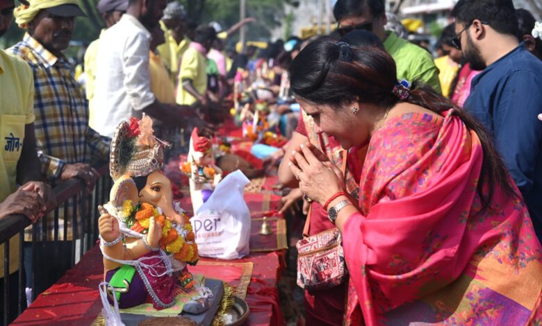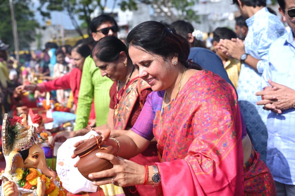 रायपुर – आज राजधानी शहर की प्रथम नागरिक नगर पालिक निगम रायपुर की महापौर श्रीमती मीनल चौबे ने अपने निवास स्थान पर श्रीगणेश उत्सव में परम्परागत तौर पर विघ्नहर्ता भगवान श्रीगणेश की मूर्ति की पूजा – अर्चना करने के पश्चात आज अनंत चतुर्दशी पर्व के पावन अवसर पर अपने परिजनों के साथ महादेवघाट खारून नदी के समीप नगर निगम रायपुर के विसर्जन कुण्ड में पहुंचकर पति छगन चौबे ( पूर्व पार्षद रायपुर नगर पालिक निगम ) सहित परिजनों के साथ प्रथम पूज्य देव श्री गणपति की पूजा – अर्चना, आरती कर अगले वर्ष जल्दी आने की प्रार्थना सहित सभी नगरवासियों के जीवन में सुख, समृद्धि, स्वास्थ्य, शान्ति और शुभत्व प्रदान करने और रायपुर शहर को सुन्दर विकसित स्मार्ट राजधानी बनाने सकारात्मक शक्ति प्रदान करने हेतु विनम्र प्रार्थना श्रीगणेश के दिव्य श्रीचरणों में की.